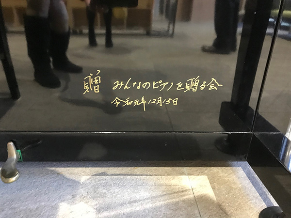 贈呈「道の駅 かわプラザ」 みんなのピアノを贈る会2019年12月15日 茨城県常陸大宮市にある国道118号沿いの道の駅「かわプラザ」さんへ、アップライトピアノ1台をお贈りしました。 年の瀬も押し迫った12月の日曜日、多くの人が行きかう施設内に席を並べていただき「贈呈式」と「記念コンサート」を開催いたしました。前半はピアノ演奏や声楽でお楽しみいただき、後半は集まってくださった方たちみんなでクリスマスの歌を歌いました。 現在ピアノは、曜日・時間を決めて事前申し込みによる開放となっているそうです。 一覧に戻る